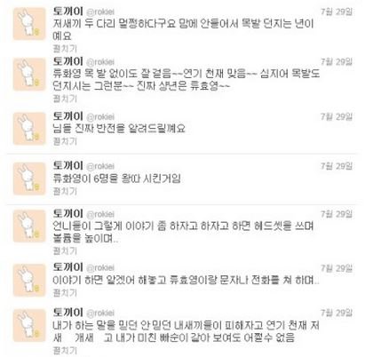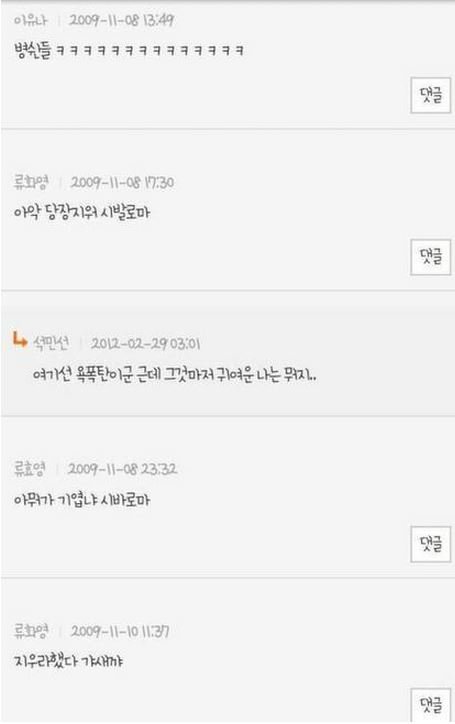 류효영 미니홈피임. 화영이랑 데뷔전에 욕질하던 글.