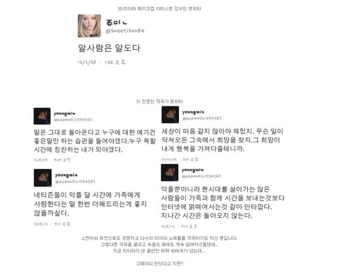 아무리 다리다쳤다해도 안무 안하더라도 앉아서 노래만 부를 수도 있는건데 꾀병으로 아예 콘서트 서지도 않고. ㅇㅇ 의지트윗 그정도 날릴수 있지 물론 티아라가 잘한건 아니지만 그런