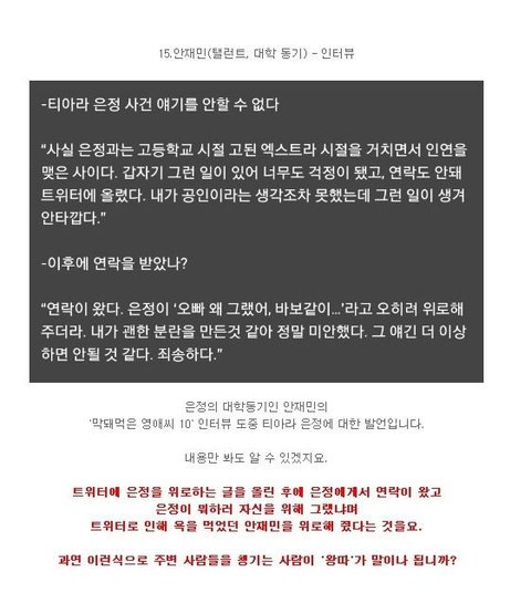 즉 저사람은 소속사가 하는 말 듣고 저러는게아니라, 직접 봤다는것