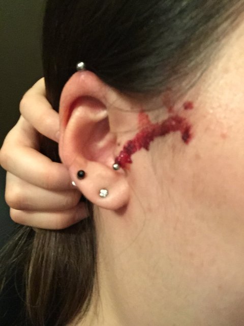 이쪽은 오래전에 아문 상태인데도 불구하고 귀안에 피딱지가 앉았어요