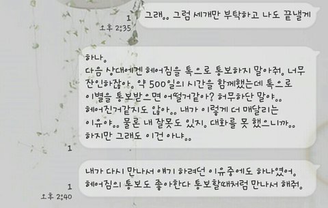 이렇게 저는 일방적인 이별 통보에 대답을 해주었습니다