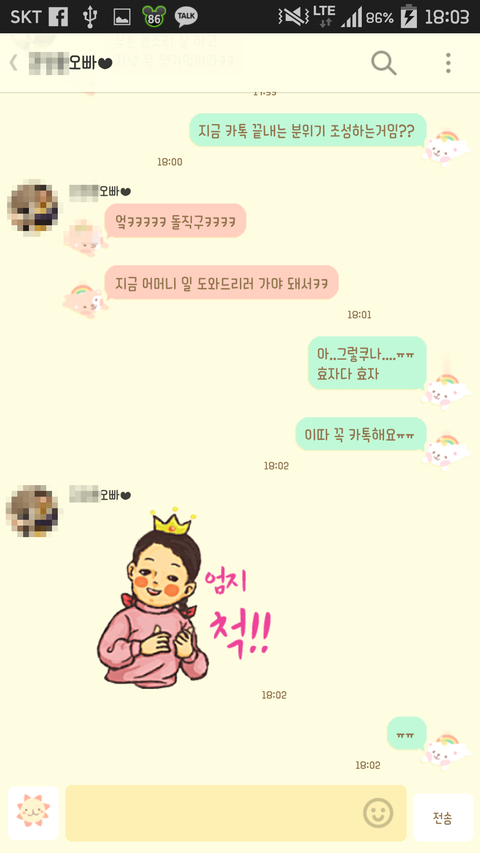 ※남친(이라쓰고 ㅆㄹㄱ라 읽는다)이랑 카톡