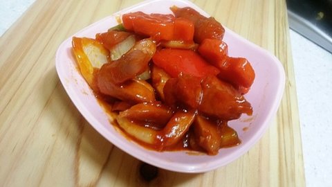 양파,당근,파프리카,애호박이 들어간 소세지야채볶음ㅎㅎ