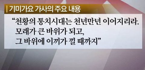 그러한 과거사로 인해 오키나와 인들은지금도 여전히 일본을 좋아하지 않는다. 그리고 기미 가요. 그 안에는 일본 왕의 장수를 비는 내용이 담겨 있다.
