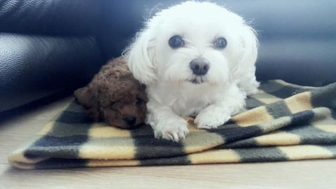 9년된 하얀 암컷 말티즈입니다. 지금 이 사진보다는 털이 많이 자랐을수도 있습니다.