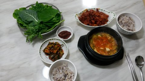 우리집 평소 밥상. 찌개에 주메뉴 고기반찬.