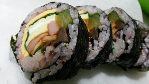 맵게 어묵볶아 치즈 깻잎등을 넣어 만든 김밥^^