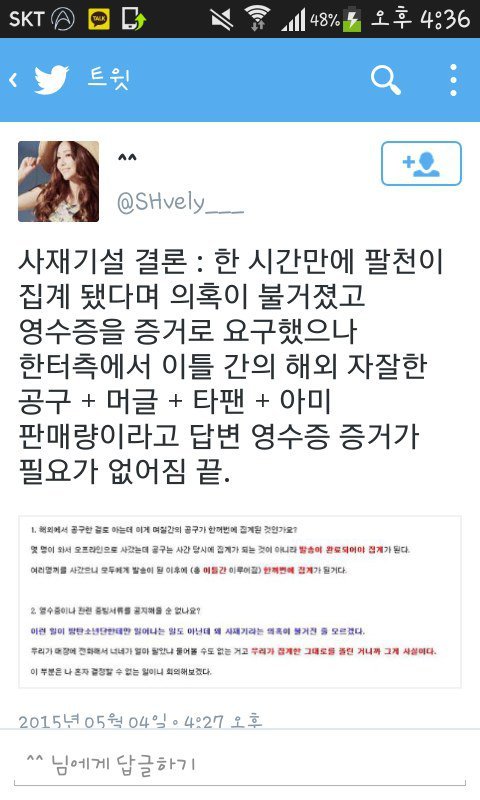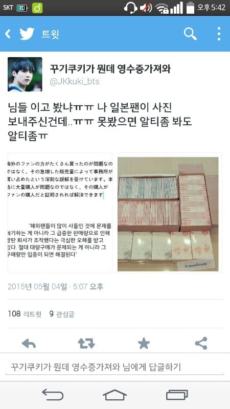 공구 영수증이 다 개인배송되어 한꺼번에 모으기 힘들다고 들었습니다.그리고 사재기했다는 증거가 그저 방탄이 앨범이 잘팔렸다는 것뿐이면서 영수증을 내놓으라고 하시는것도 사실 어이없습니다.빅히트는 걸그룹에게 쏟아부었던 돈이 글램이 해체되면서 날라갔고 그때문에 빚이 생겨 사재기할 돈도 없다고 합니다.바코드나 장부 조작 등의 방법이 안된다는건 이미 잘 알고계실 것이구요.또 이번에 앨범이 핑크와 화이트 2종류인데, 공방뛰려면 앨범 2개를 모두 사야합니다.방탄소년단 트위터를 보시면아시겠지만 이번에 함성이 엄청 컸다고 감사하다는 글이 많이 올라왔는데 그만큼 많은 아미들이 앨범을 샀다는것이겠죠.몇몇 분들을 보면 기본 3~4장은 산다고 하기도 하고요.그리고 그동안 꽤 많은 인기가 있었음에도 1위를 못해 이번에는 꼭 1위를 시켜주겠다고 단합한 팬들이 매우 많습니다.물론 입덕 팬들도 많아요.멜론 순위를 보시면 알겠지만 20위 이내를 계속 지키고있습니다.(현재 150504 12:09 13위) 한터차트가 급증한 현상도 의심을 많이 하시는데 이는 사람이 직접 입력하는것이기 때문에 그때그때 입력한것이 아니므로 3일치를 한시간안에 입력한것이라면 한시간안에 급증한 그래프를 입증할수있습니다.그리고 한터차트의 피드백(사재기는 사실무근)을 보시고 쟤네도 한통속인데 인정하겠냐는둥 말씀하시는 분들은 뭘보여드려도 안믿으실것같네요.자신이 믿고싶은것만 믿으실 분들이니까요.