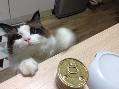 아줌마가 언제 닭가슴살을 까려나.. 이제 캔을 따려나...?