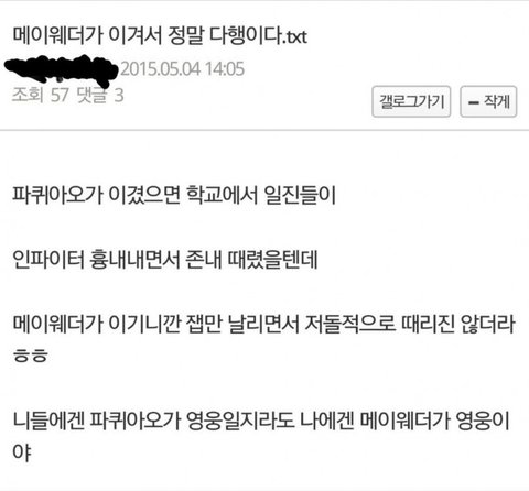 메이웨더를 욕하지 말라는 한 남자의 사연