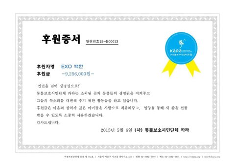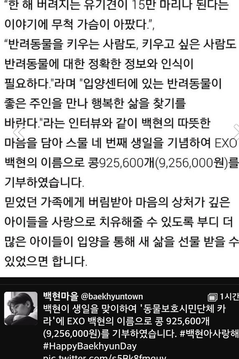 동물을 좋아하는 백현이를위한 안성맞춤 훈훈한기부