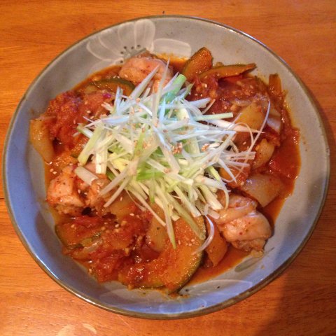 요건 닭다리로만 만든 닭볶음탕이에요. 토마토를 넣고 좀 달달 매콤하게 끓엿는데 맛있더라구요!!