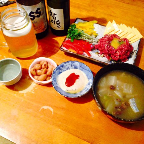 육회가 엄청 땡기던 날이어서 육회를 해먹었어요!! 육회지x 에서 나오는 것처럼 구색 비슷하게 갖춰서 차려봤어요!! 배가..한개에 3000원이라서..그냥 집에있던 파프리카로 대체했어요! 소고기 무국은..전전날 끓엿던거 담은거구요~~!!육회도 집에서 해먹는게 좋을거같아요 앞으론!!!