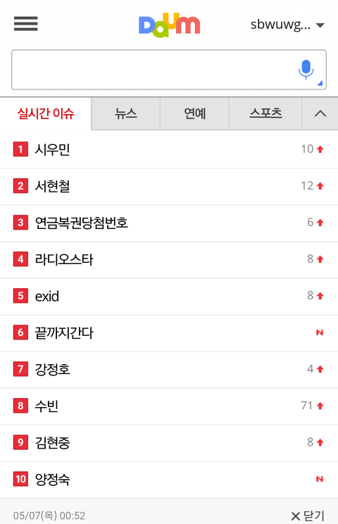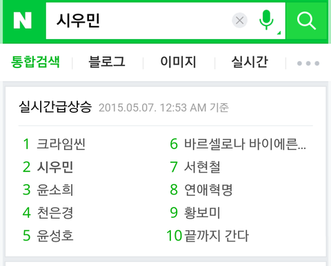 시우민 다음 네이버 실검