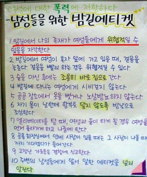 어느대학 패미니스트들이 남자들에게 주는 매너에티켓