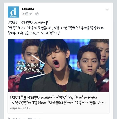 애들아 지금 태형이가 수상때 ㄹㅈ부른거 때문에 논란 되잖아