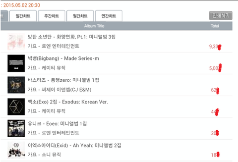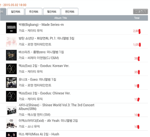 방탄의 사재기 결정적 증거 : 한터차트는 주말에 온라인집계가 안되기때문에 저렇게 몇천장이 확 터질수 없음. 그리고 음반낸지 4-5일차면 보통 줄어들기 마련(특히 이번경우엔 주말이 겹쳤기 때문에 집계안되는 량으로 인해 줄어들 수 밖에 없음)