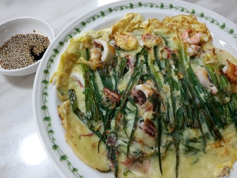 새우,오징어,쪽파,계란넣고 만든 해물파전