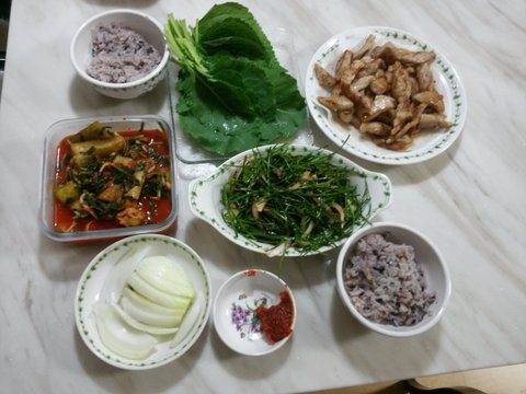 오이,부추무침이 일품인데 따로 찍은사진이 없어서 모듬사진ㄱㄱ