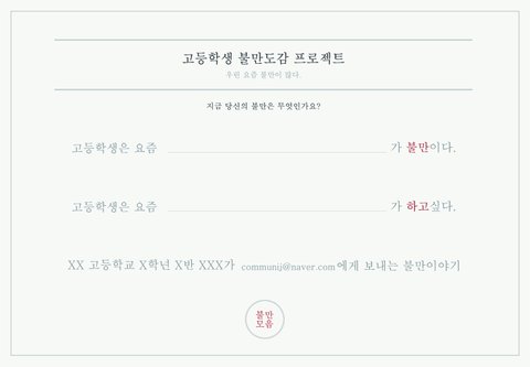 불만메일 내용 예시: (친구, 가족, 자신, 생활, 학교, 학원, 사물, 심리 등)