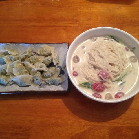 간단하게 두부랑, 견과류 넣고 갈아서 콩국수 해먹었어요~~물만두랑 냠냠!