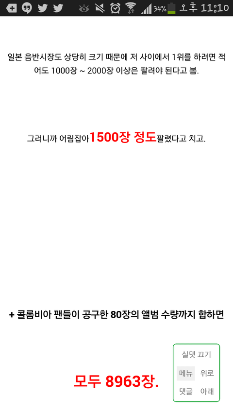 해명글이었거든 그겈ㅋㅋㅋ 긐ㅋㅋ 뭐냐 쇼핑몰 앨범 사진 도용한거를 증거로 올려놓고선ㅋㅋ 사진 모은다음 다 세봤나봨ㅋㅋ 그리고 자긴 타팬이래..ㅎㅅㅎ