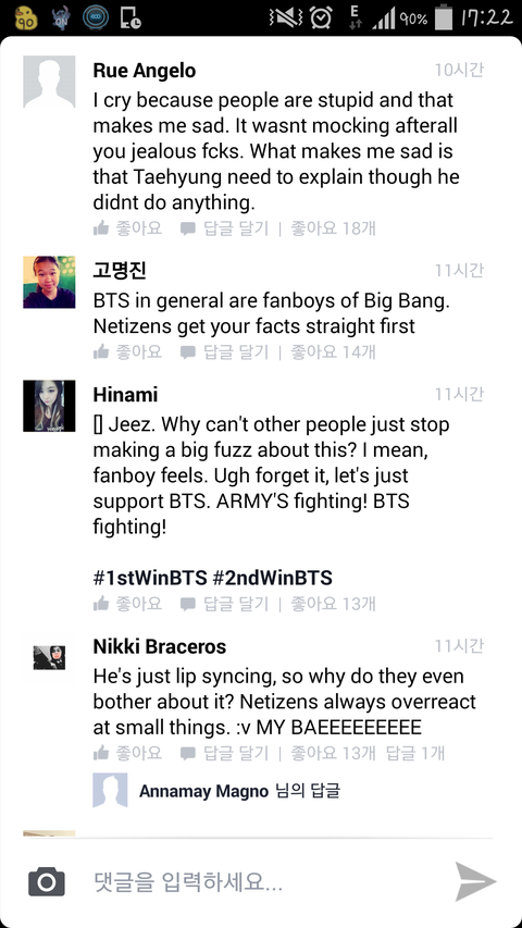 도대체 립싱크했던게 뭐가잘못된거야??이건 그냥누군가가 오버하고 그아이를 오해하고있는거야. 진짜 진지하게 누군가의 팬이된다는게 언제부터 잘못된거야? 난엑시드노래 립싱크하면서 따라부르는것도 해명해야되는거야?