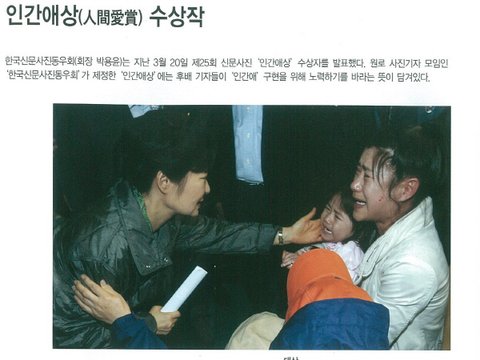 박 대통령이 세월호 참사로 가족 잃은 여자아이 위로하는 사진 ‘인간애상 대상’ 에 선정