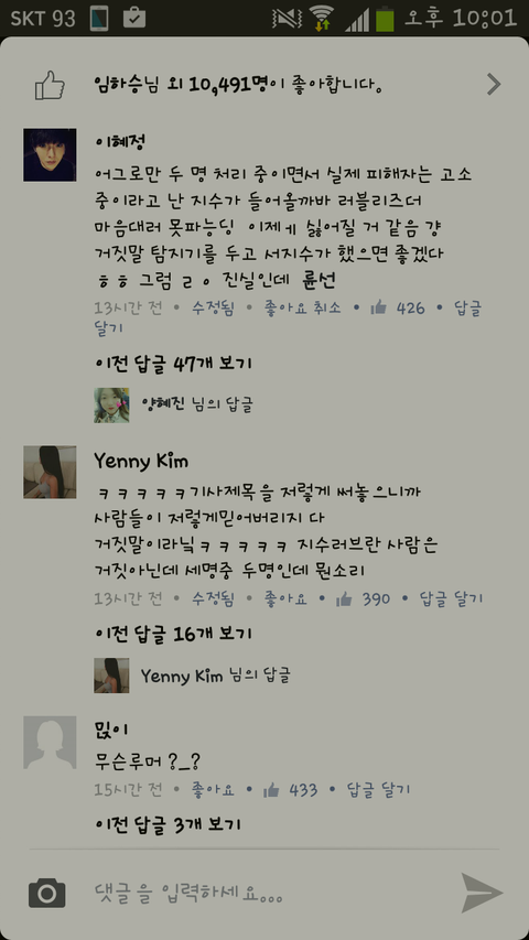 나는 판에서 서지수일 다 루머고 거짓이라고 알고 있었는데 페북보니까 지수러브?걔는 진짜 피해자래;;;