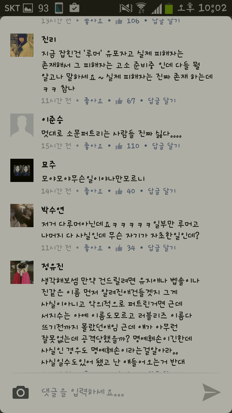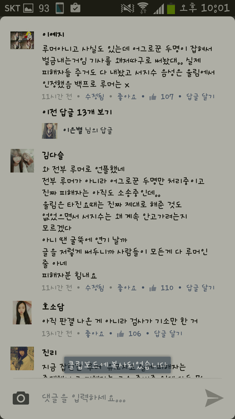 도대체 저 사람들은 뭘 근거로 서지수사건이 루머가아니라고 하는거야?