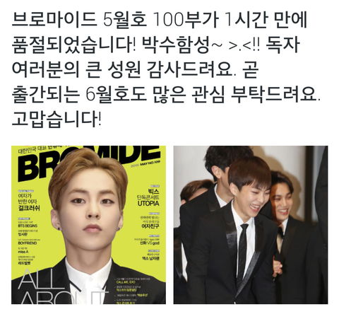 시우민 5월호브로마이드 100부도품절!