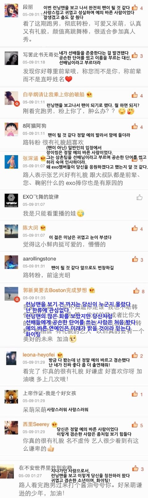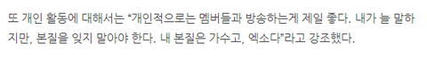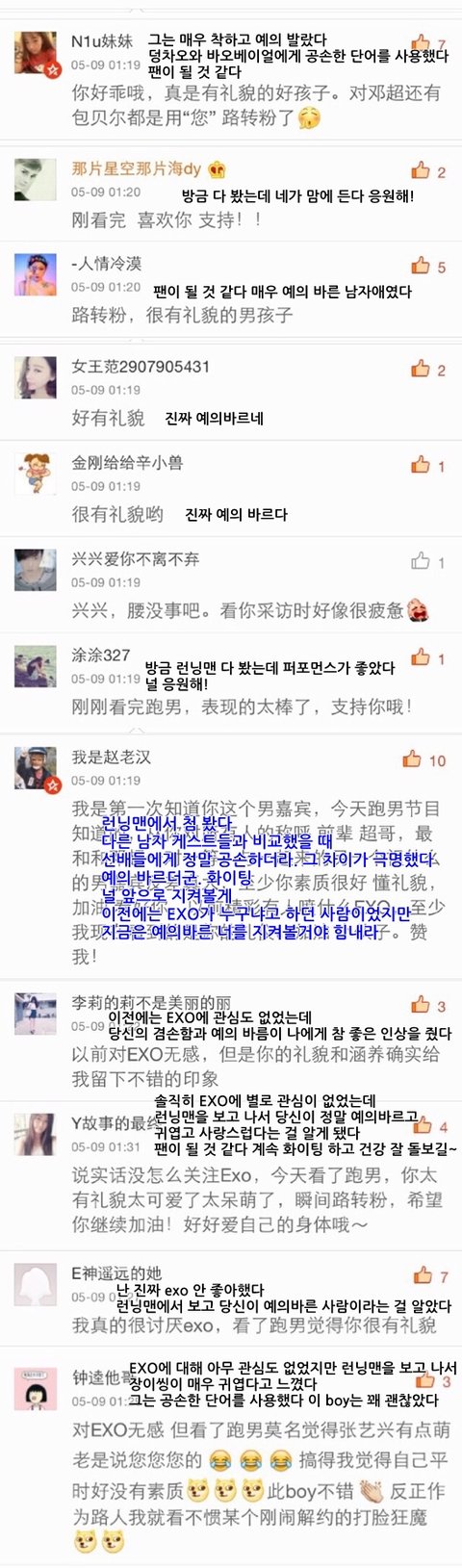 A. 그건 그 사람이죠. 바로 우리 그룹 EXO요.
