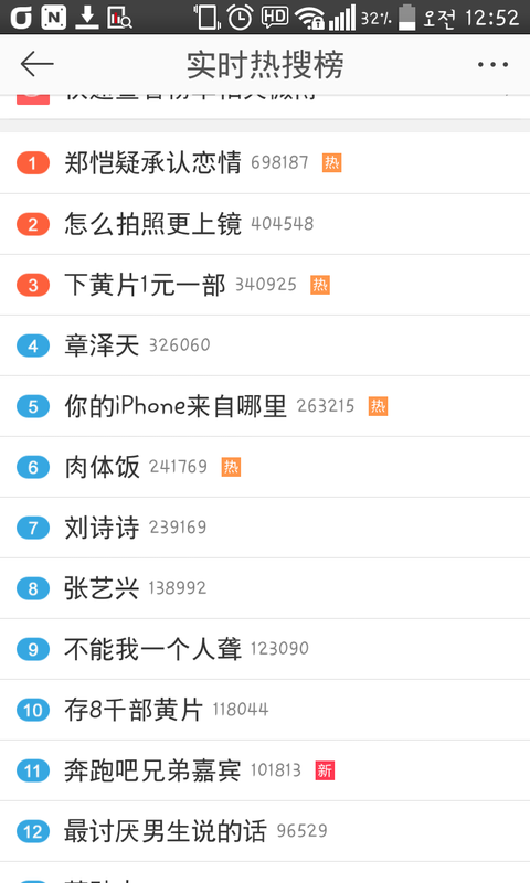 12시간이 넘게 웨이보 실시간 검색어 10위권 안에 들음