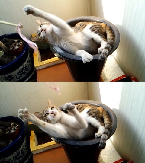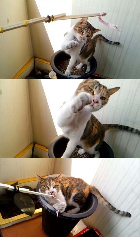 길고양이 람쥐와 조금더 친해지기 위해 잠깐 놀아볼까하고 막대기로 툭툭 건드려보니...