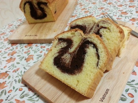 무늬 예쁘죠! 초코 마블 파운드 케이크예요 반죽 조금 나눠서 코코아가루만 따로 섞어주고 휘저으면 끝(?) 아무튼 번거로운 듯 아닌 듯하면서 선물하기 딱 좋은 것 같아요~
