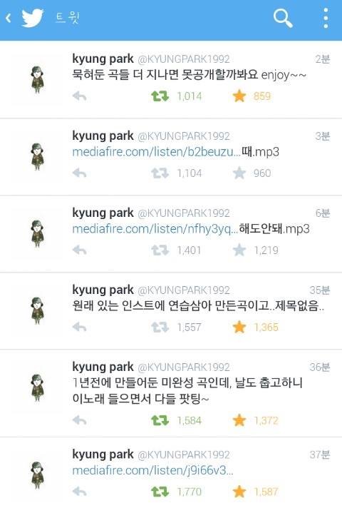 그리고 얼마전 2014년 12월 한창 추울때 추운데 노래듣고 팬들 힘내라고 트위터로 믹테3 개를 품ㅋㅋㅋㅋㅋㅋㅋ(그중하나는 좋다고 아무때나 풀지말랬는데 왜풀었냐고 지코한테 혼남ㅋㅋㅋㅋ)