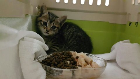 아파트 단지내 주차장에 울고 있는 고양이을 경비실에 맡겨뒀으니 빨리 대리고 가랍니다.