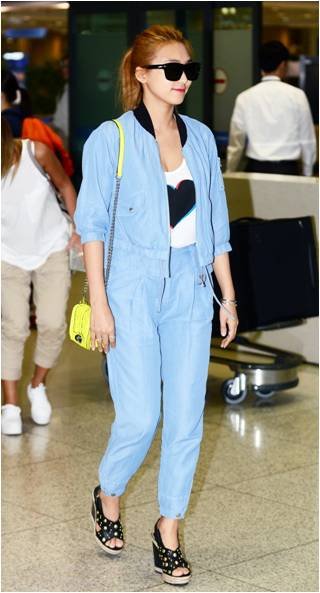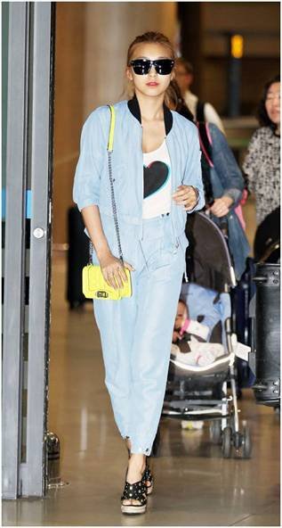 상큼섹시한 보라 공항패션