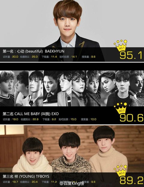 백현이 바이두뮤직 3주1위