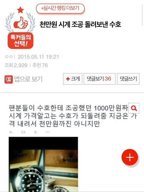 톡선에 악개짓하는 수호팬