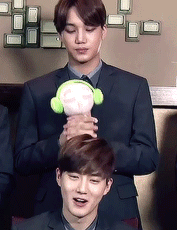 이 인형이 원래는 머리장식? 벗길수 없게 돼있었나봐 그걸 종인이가 꼬물꼬물 힘으로 뜯어냈다고 ㅋㅋ제일 위에 뚱한 종인이랑 막짤 종인의 후련하고 상쾌한 모습이 참 인상적이다ㅋㅋ