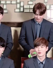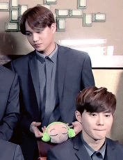 인형들고 뚱한 종인이 뭔가 맘에 안들어...ㅋㅋ