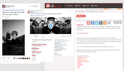 방탄소년단은 사재기 의혹을 받고 있는 것을 보면 가슴이 아프고 화가 납니다. 방탄소년단의 음반 판매량이 진짜 큽니다. 그런데 이 사실만 놓고 의심하기보다는 외국팬에게 시선을 돌려보십시요. 저희의수는 많습니다. 아주 많습니다. 여러분의 생각보다 아주 많다는 말입니다. 저희는 러시아뿐만 아니라 위에 언급했던 많은 나라에서 사는 팬도 많습니다. 그리고 저희가 수많은 음반을 한꺼번에 같이 삽니다. 게다가 각 식 음반 두 개를 삽니다. 왜냐하면 음반을 사는 것이 우리가 사랑하는 방탄소년단을 지원하는 유일하는 방법이기 때문입니다.여러분, 그런 생각을 해 본 적이 없습니까?