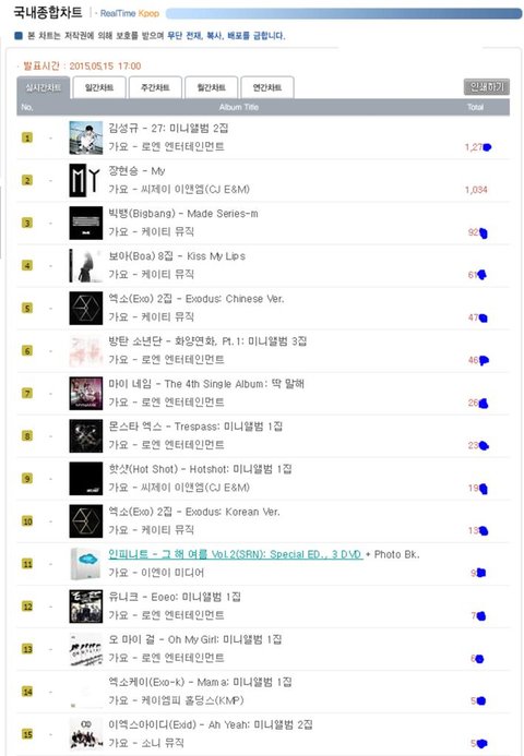 분명 한터차트 1위가 규였고 15위안에 ㅈㅎㅅ 앨범 하나도 없었음