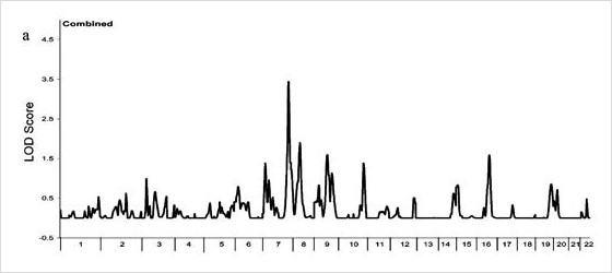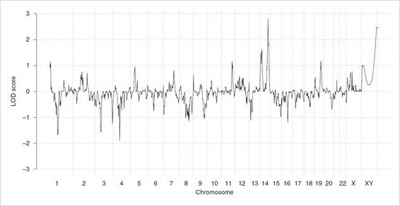 ▲그림3 전체 게놈에 대한 LOD 값(Ramagopalan et al., 2010)
