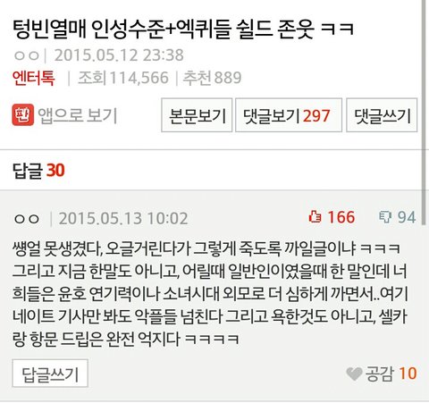 진심 태연 열애설 전에는 거의 악플 없고 대중들에게는 완전 소시하면 태연인 원탑급인데 엑퀴들 하는짓 보면 .. 세상에서 제일 나쁜년 되버림 쟤네 댓글보면 ㅋㅋ 태연 진짜 불쌍해서 뒤지겠다 내가 저딴 쌍욕 패드립 들으면 당장 고소해서 질질싸게 할텐데 ㅠㅠㅠㅠ ㅠㅠㅠ