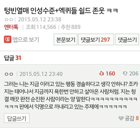 >베플=저게 그렇게 잘못한거냐 ㅉㅉ