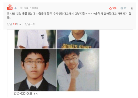 이것도 ㅋㅋㅋ 솔까 과사랑 되게 다른 두주니즈는 다이어트하고 안경빼서 용된거라 하고 과사랑 존똑인 수지는 다이어트해서 저렇게 예뻐지기 힘들데 ㅋㅋㅋ 이게 여돌과 남돌 반응의 차이다 ㅋㅋㅋ