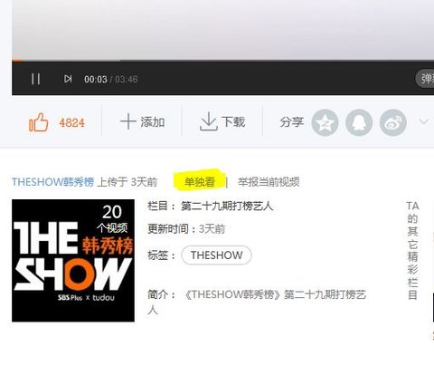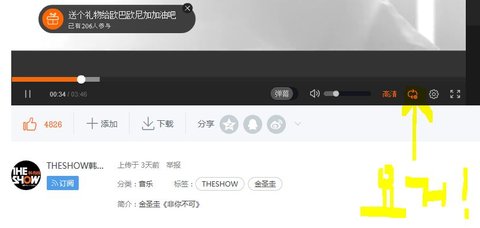 저기 뮤비 밑에 더쇼 사진 크게 있는데 잘보면 노랑색 표시한 부분이 있을거야! 그거 누르면 뮤비가 다시 시작되는데 겁먹지 말고 꼭 뮤비 밑에 반복표시 눌러줘야해! 음소거는 안돼