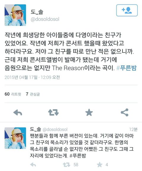 경기 남양주에 사는 직장인 김모씨(31)는 이 곡을 듣고 다영이를 떠올렸다. 이름을 밝히길 꺼려한 김씨는 경향신문과의 인터뷰에서 샤이니 팬이었던 다영이가 지난 3월 콘서트에 참가한 것, 다영이를 위해 샤이니가 자필 사인 앨범을 보냈던 사실을 기억했다고 한다. “이젠 들을 수 없는 다영이 목소리지만 팬들의 노래 속에 다영이의 목소리도 분명 있을 겁니다.”